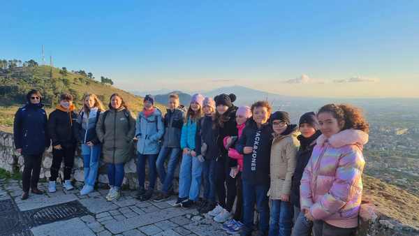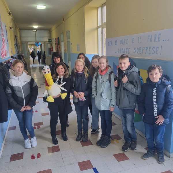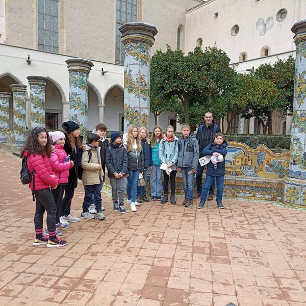 Heute waren wir in der Grundschule „Istituto comprensivo statale "pietro giannone"- scuola infanzia e primaria“. Das war fast neben dem Hotel, also nur wenig zu laufen. Eine Klasse hat zur Begrüßung für uns die italienische Nationalhymne und die die Europahymne von Beethoven gesungen. Dann haben wir uns die Schule angeguckt.